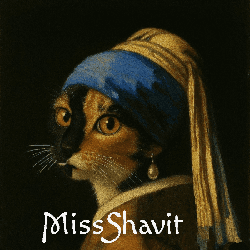 Small in size, big in personality! This adorable Pooky artwork - styled after Girl with a pearl by Vermeer is a delightful way to bring joy and color into any space.